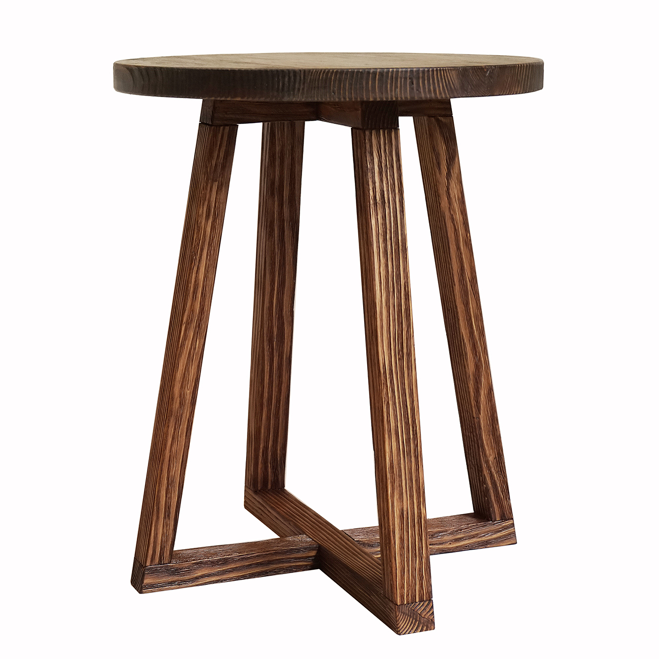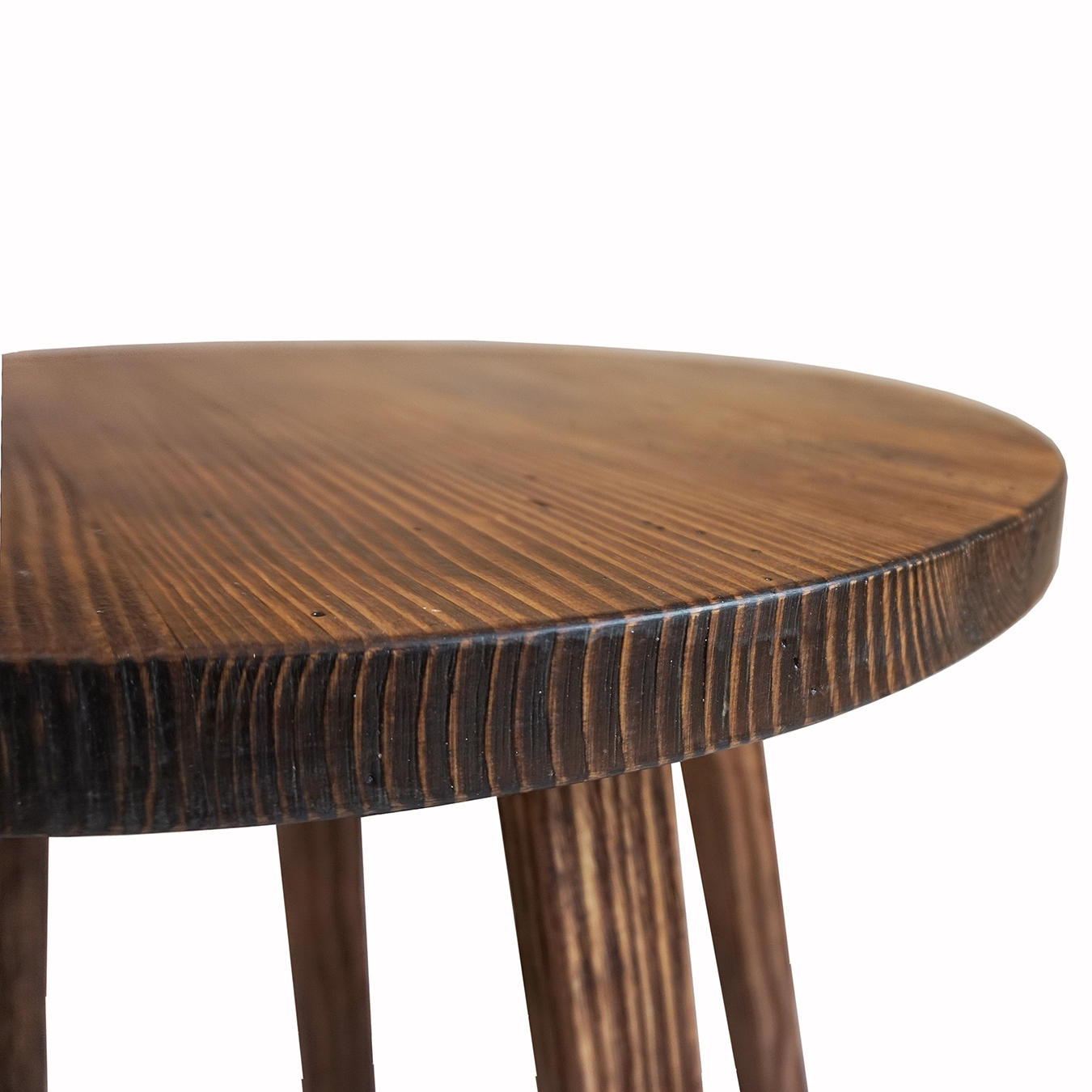 Zgrabny, stylowy stolik wykonany ze starego drewna. Prosty design nawiązujący do stylistyki vintage. Obiekt może służyć na przykład jako łatwo przenośny stolik do porannej kawy.